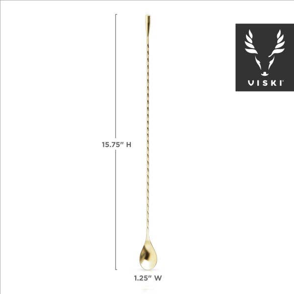 Designed for the quickest swizzling and stirring, our gold weighted barspoon spins its way from a smoothly concave spoon bowl to a tear-shaped tip at the stem's far end.