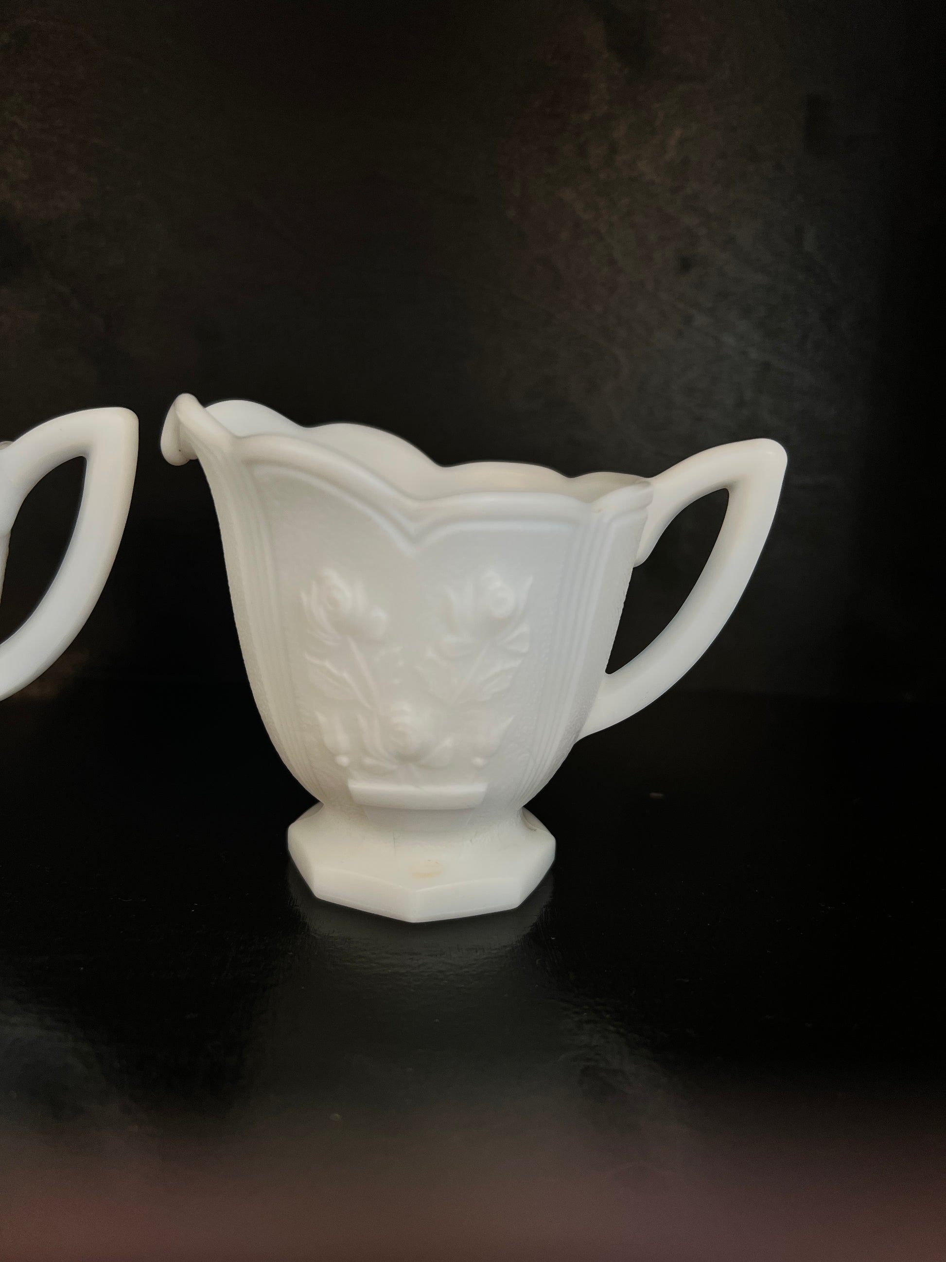 Imperial Ohio Milk Glass Cream and Sugar Set - Rose Pattern Matte Doeskin Finish