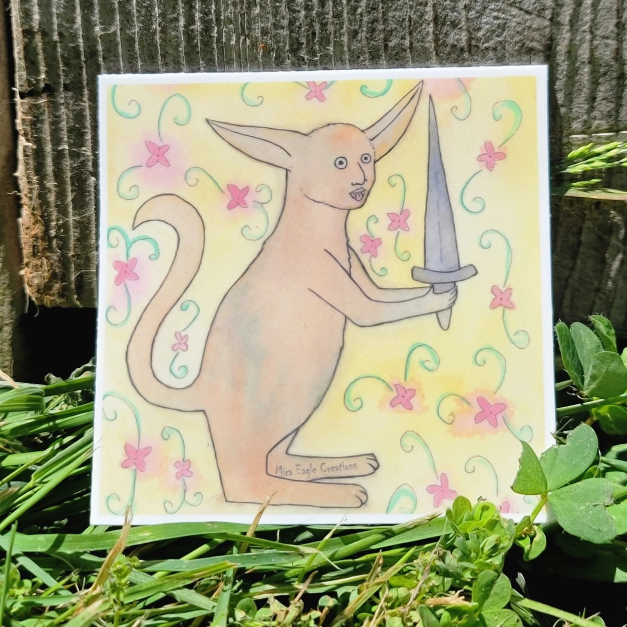 Inspired by the wonderfully weird world of medieval art, this kitty has crowned himself king. His taxes are paid in treats, and he demands pampering around the clock. Cross him, and you risk the wrath of his royal paw. Water and fade resistant, this sticker is fit for any feline monarch (or human subject).