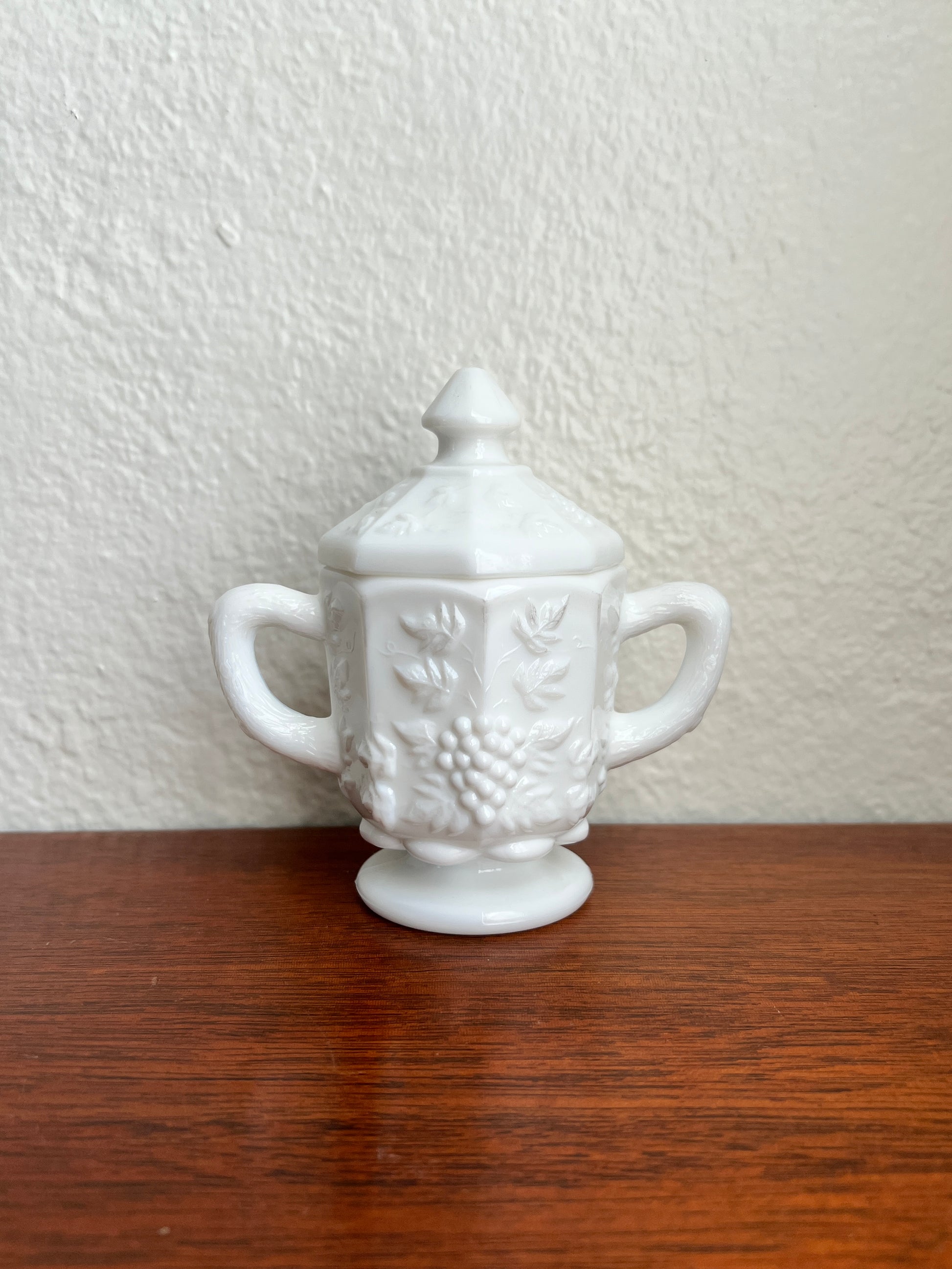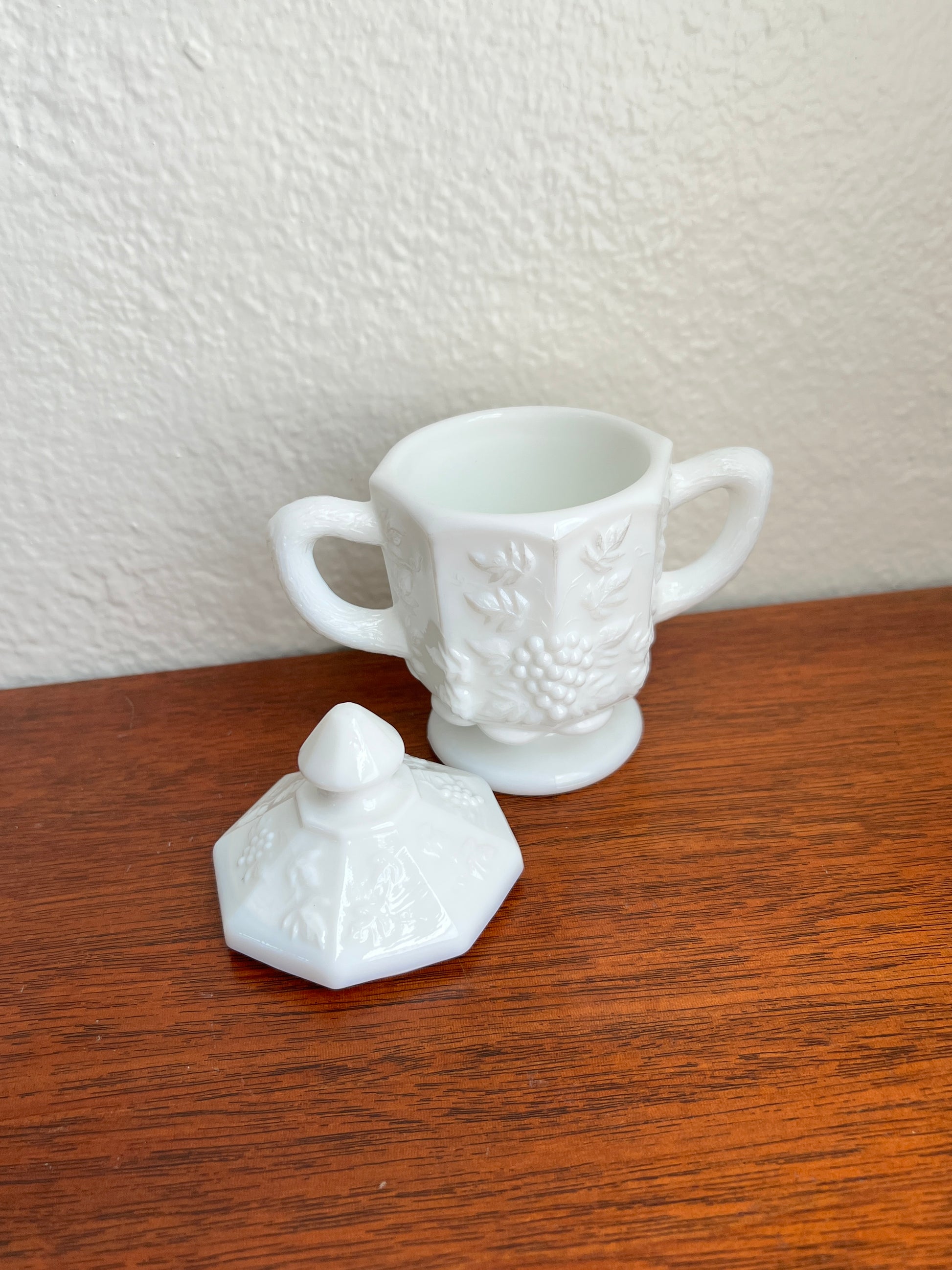 Westmoreland Paneled Grape Milk Glass Sugar Dish with Lid - Vintage Glassware